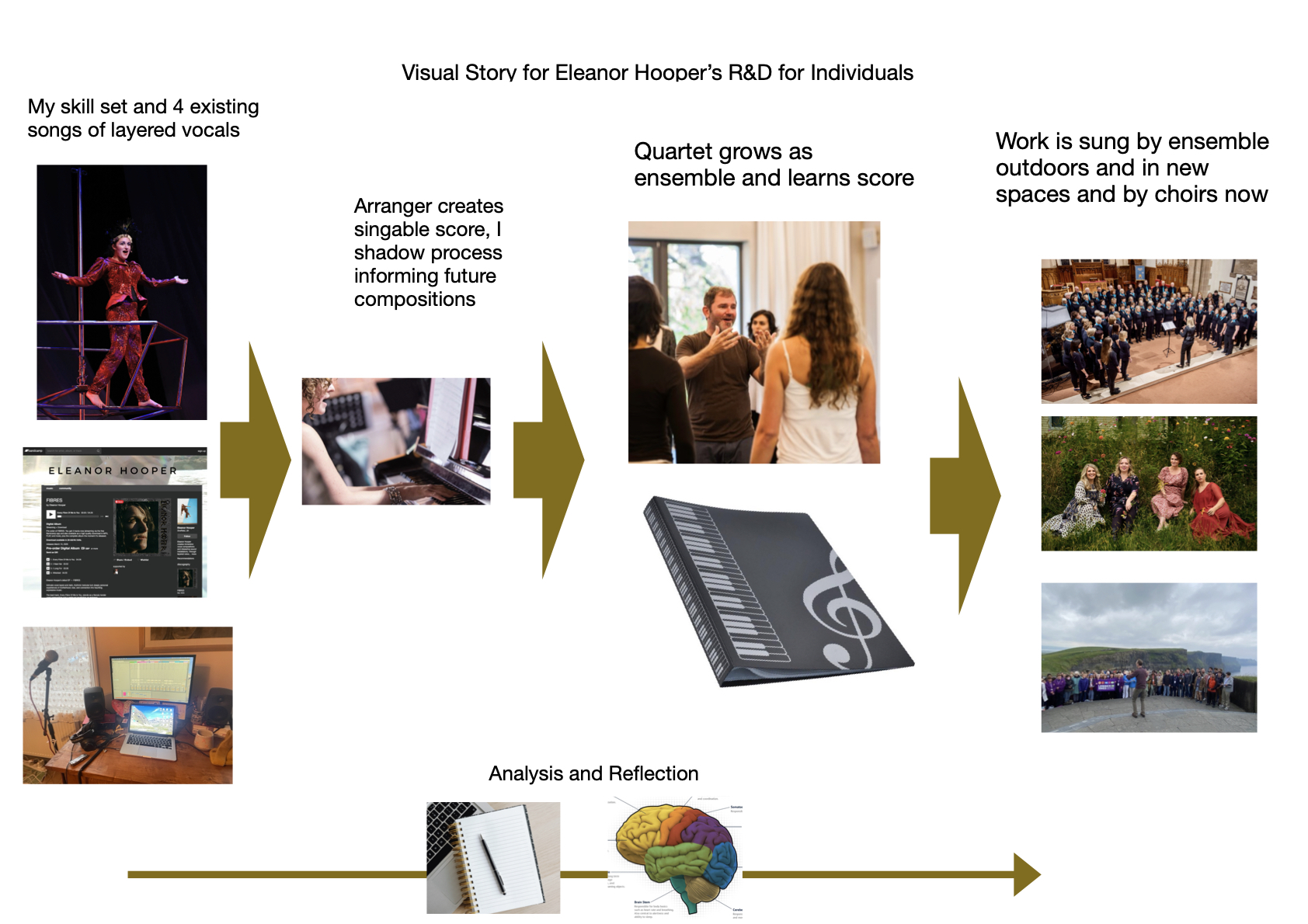 Over the last twenty years, I have co-created large-scale community performances for thousands of participants and directed works such as Toast, an interactive journey through seasons, stories, and song, and Celestial Sound Cloud, an installation that turns audience movement into light and sound.